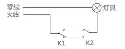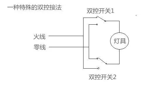双控开关有很多种接线方式,如果电工采用了下面这种接线方法,就会关灯后发微光。