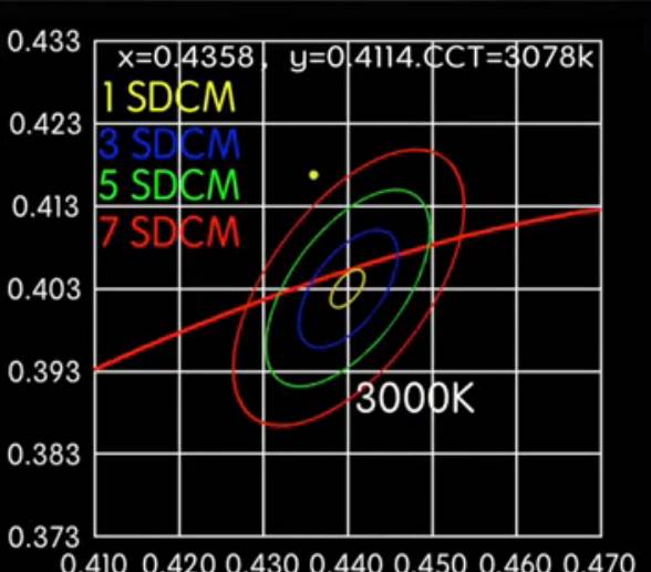 ▲暖白光,在5 SDCM以内,符合标准。